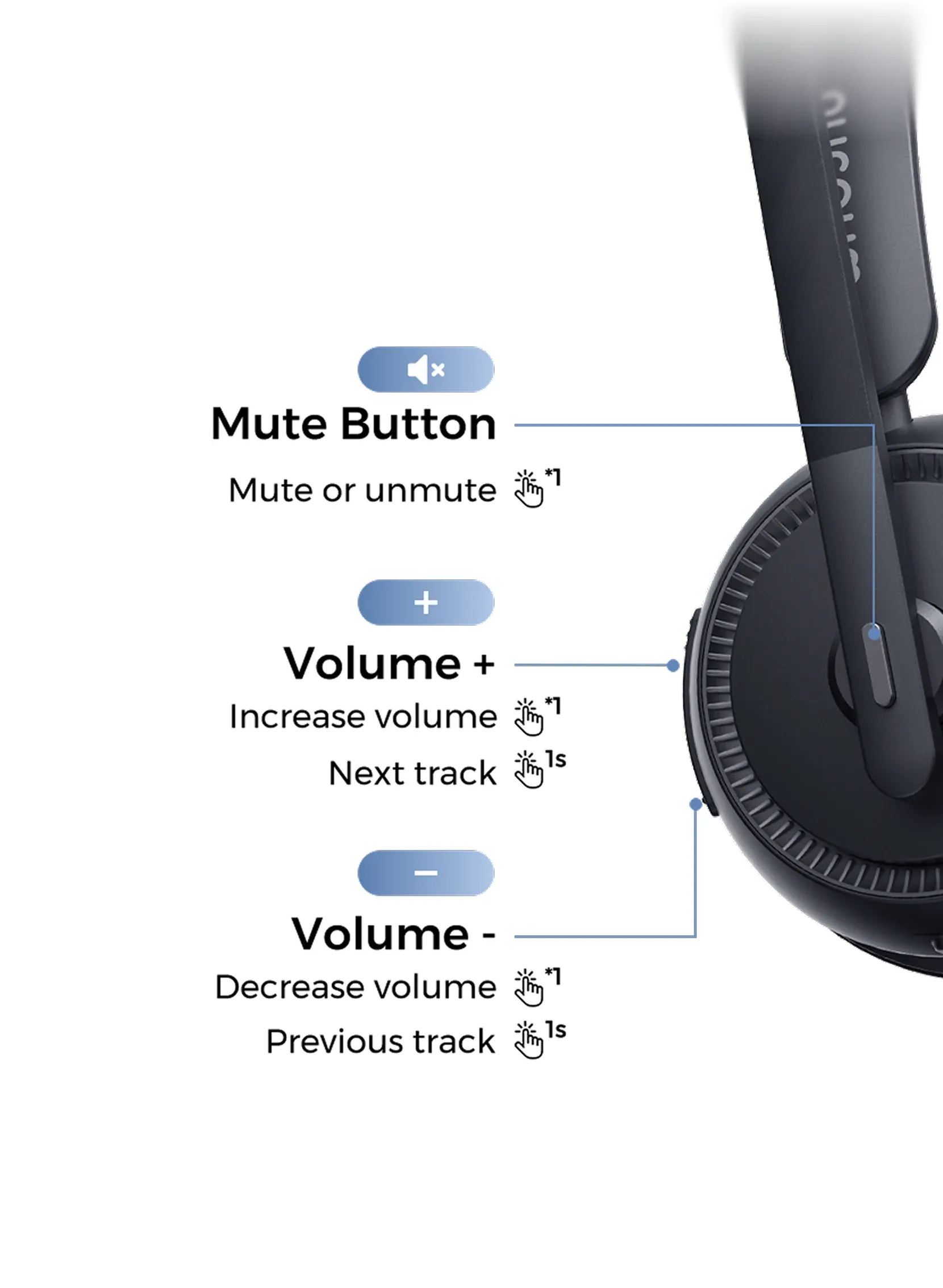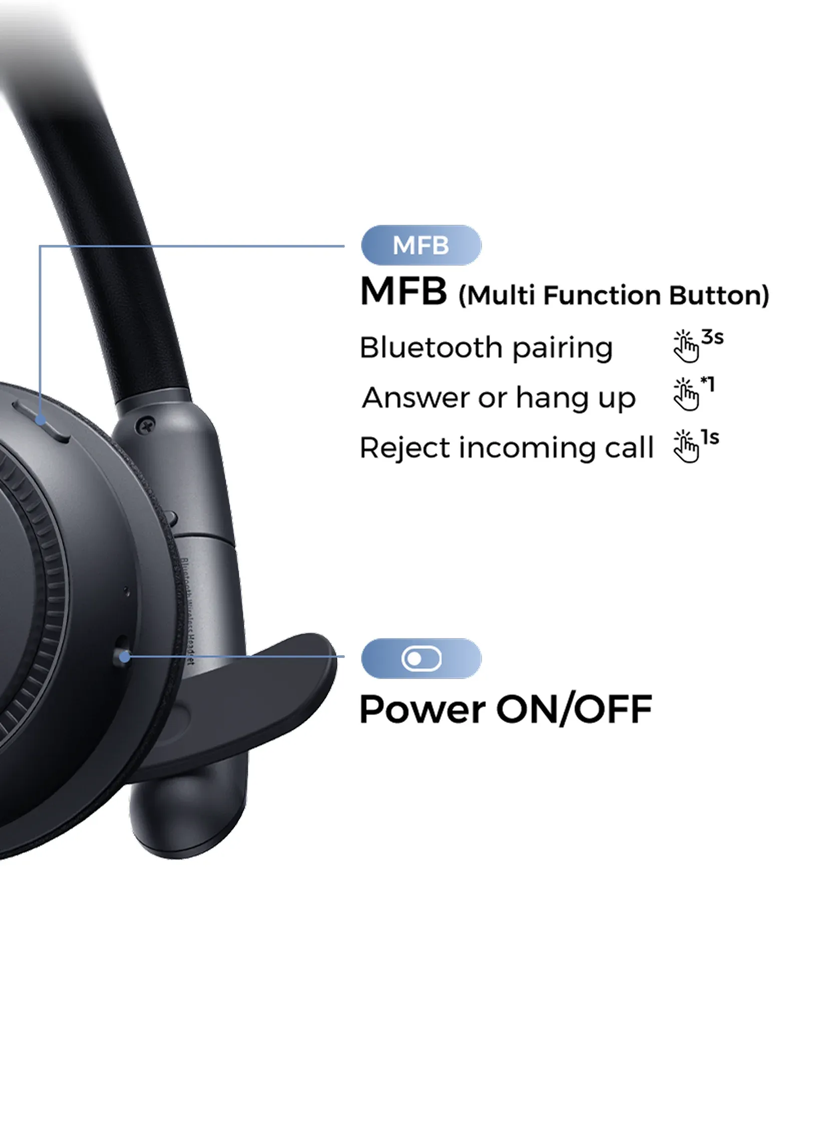 Mute or unmute instantly with a single click on mono bluetooth headset.