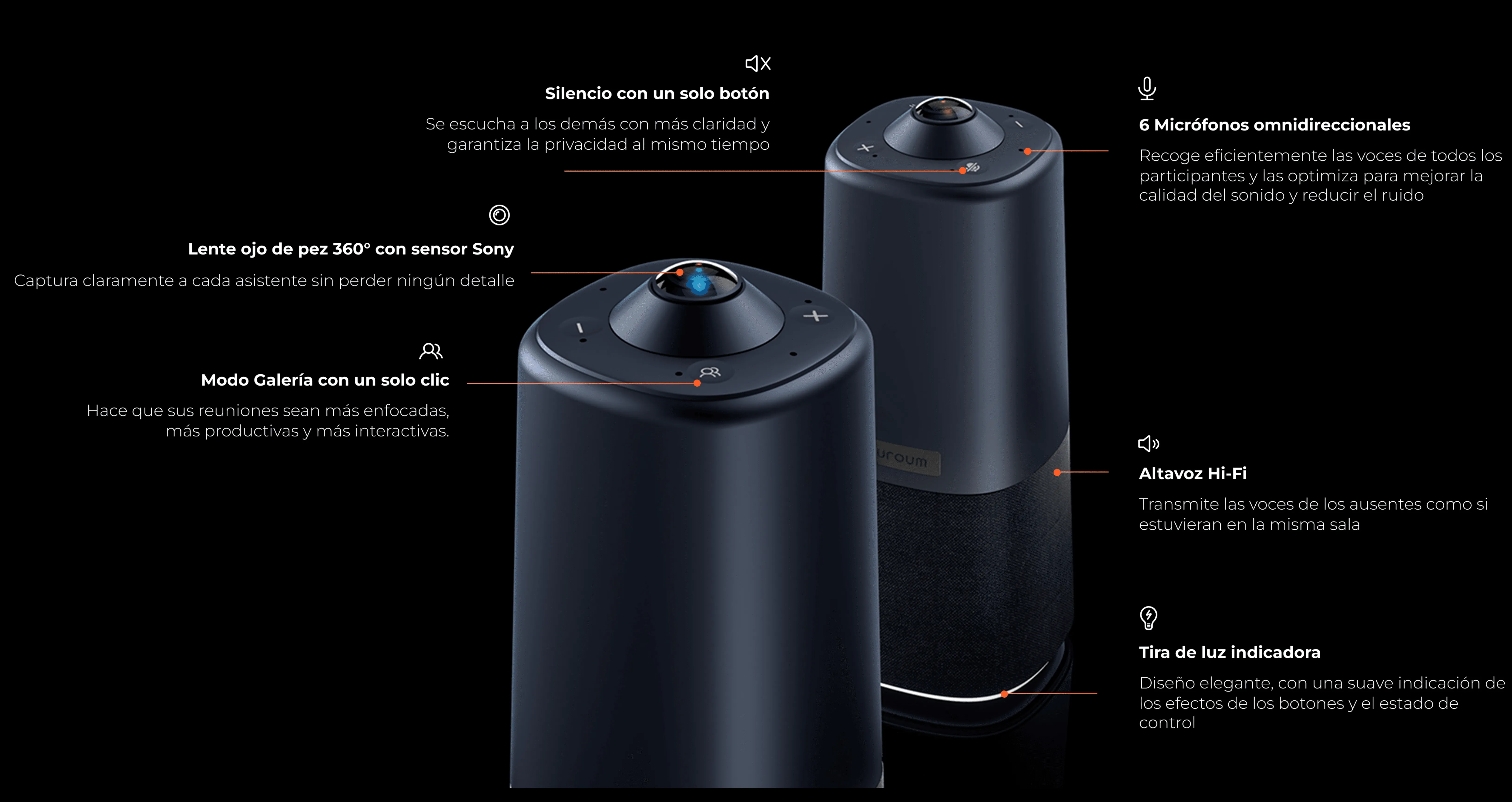 El altavoz integrado Hi-Fi de dúplex completo transmite las voces de los participantes ausentes como si estuvieran justo allí en la sala, proporcionando una experiencia inmersiva para todos en la configuración de la cámara de videoconferencia.