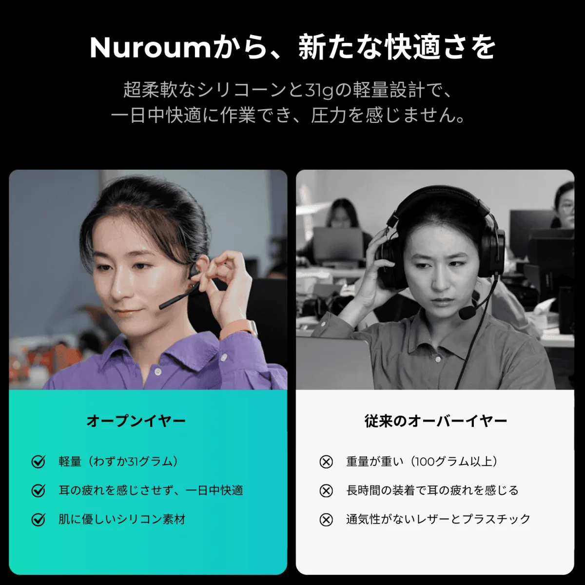 赤ちゃんが泣き出しても、Nuroum Openear Pro 2オープンイヤーワイヤレスイヤホンはあなたの声をきちんと拾い、大切な相手に届けます。子育て中の在宅勤務でも、周囲の音に左右されない安心の通話品質です。