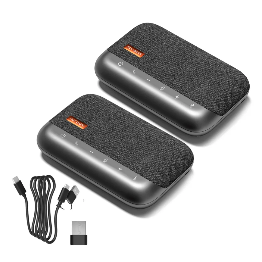 Nuroum Bluetooth会議用スピーカーフォンは、32kHz高解像度全方位マイクアレイ、ProperClean 2.0技術による高度なAIノイズリダクション、真のフルデュプレックス通信を備え、プロ品質の音声で自然かつ途切れない会話を実現します。デイジーチェーン接続によるマルチデバイス対応や、一定の音量を保つ自動ゲインコントロール(AGC)などのスマート機能により、どんな会議室でもクリアな音声を届けます。