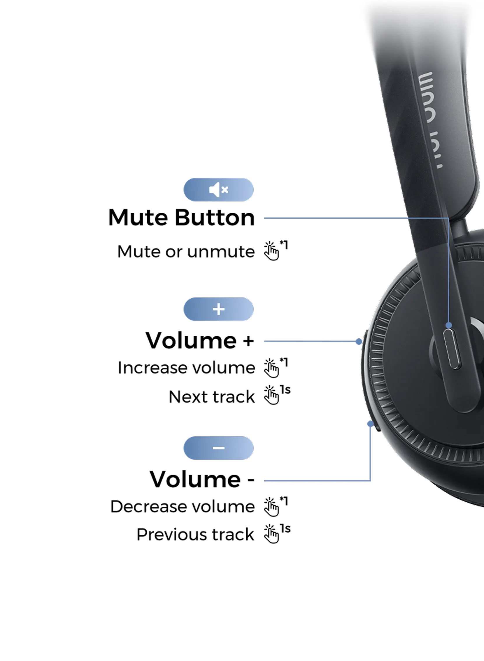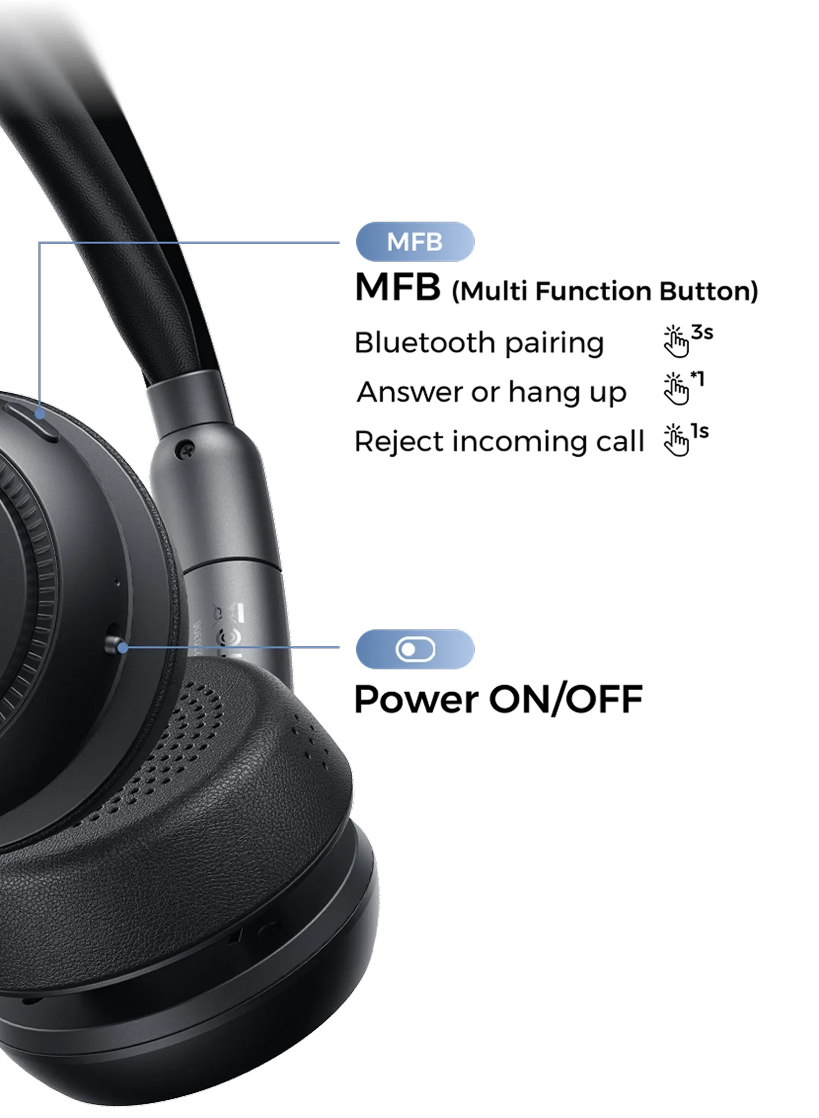 dual noise-cancelling mics, up to 45 hrs of battery life, compatible with Mac, Windows, iOS, PS5, most Bluetooth IP phones and so on.
