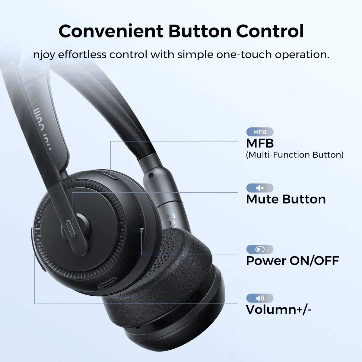 Mute your mic with a single press, plus easy volume and call controls.